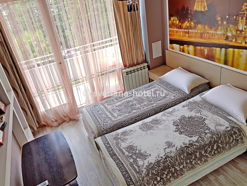 Отель «Светлана» расположен в самом сердце Сочи -в центре города на Курортном Проспекте, 75. Гостиница «Светлана» открылась в 2013 году на базе бывшего 1 корпуса санатория «Светлана» после ремонта.